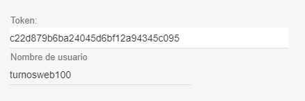 - Ingresar al usuario correspondiente. Puede haber más de uno, dependiendo la cantidad creada. Aparecerá entonces el token que se utiliza en el plugin web o el anunciador de turnos. No modificarlo.