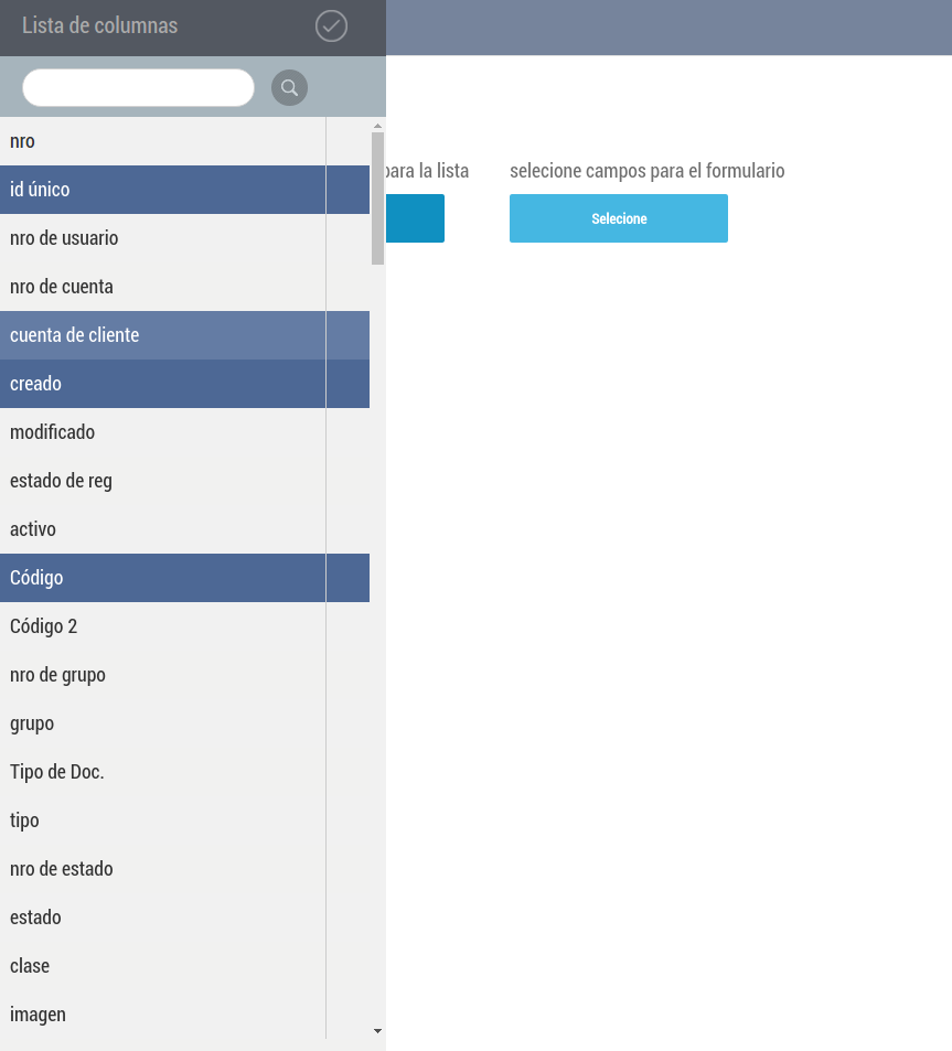 Podrá ver: por un lado las columnas para la lista y por otro los campos para el formulario.