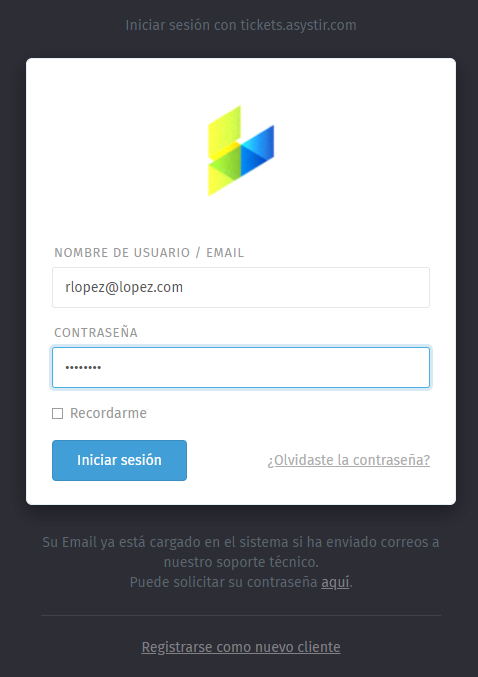 - Ingresar a nuestro sistema de tickets desde el navegador. (Si Ud. recibio un email con el ticket de su cuenta, puede ingresar haciendo clic en el link que figura en el email )