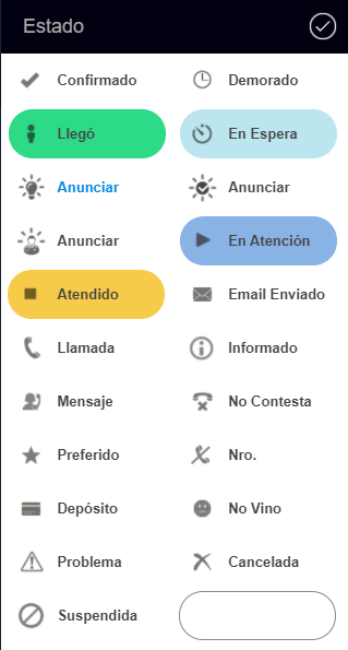6. Elijo la opción deseada: atendido, confirmado, cancelado, etc. Confirmo con el tilde negro.
