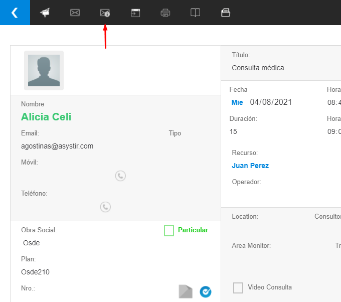Como reenviarle la informacion del turno al paciente