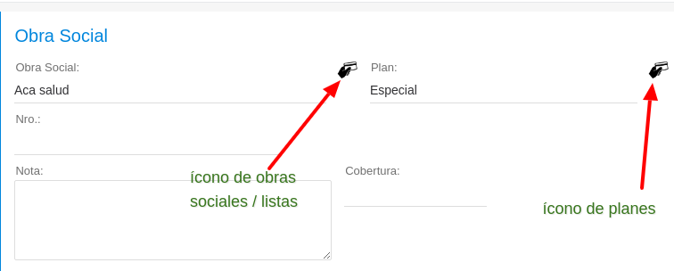Elegir la obra social, si la misma tiene planes elegirlos desde el icono de una mano con una tarjeta,que figura a la derecha