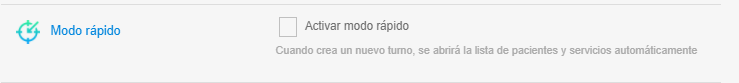 - En Asystir, existe una forma de uso conocida como "Modo rápido". Al activarla, al crear un turno nuevo, se abre automáticamente en primer lugar la lista de pacientes, y una vez seleccionado el paciente, automáticamente se abre la lista general.